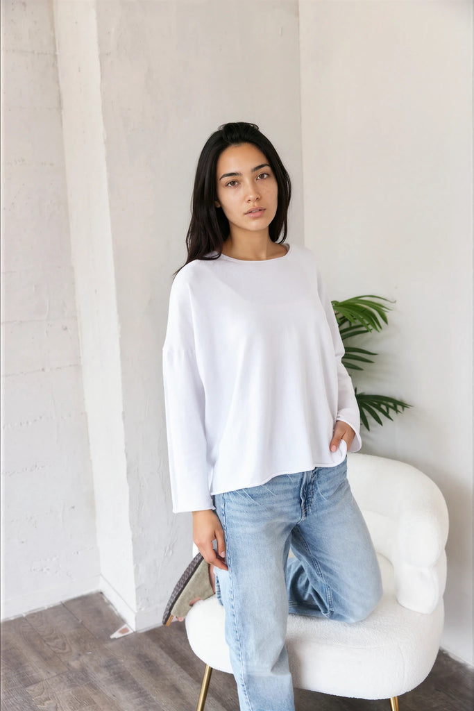 -Rolled edge crew neck